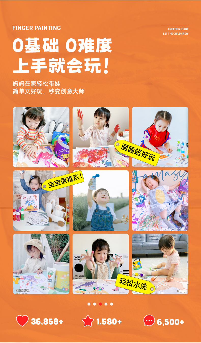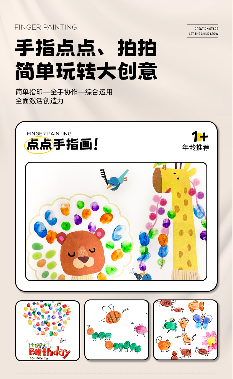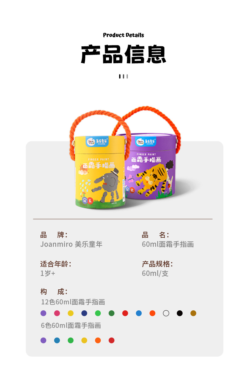Jar Melo 美乐手指画颜料儿童无毒可水洗宝宝画画颜色涂料