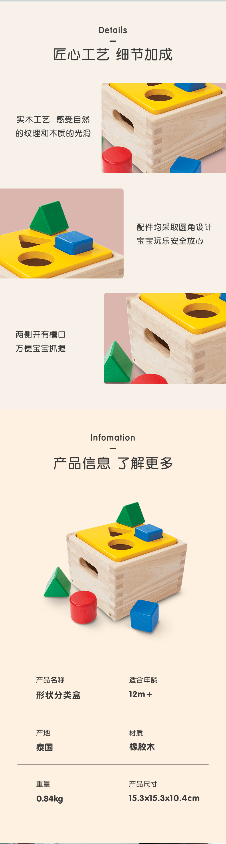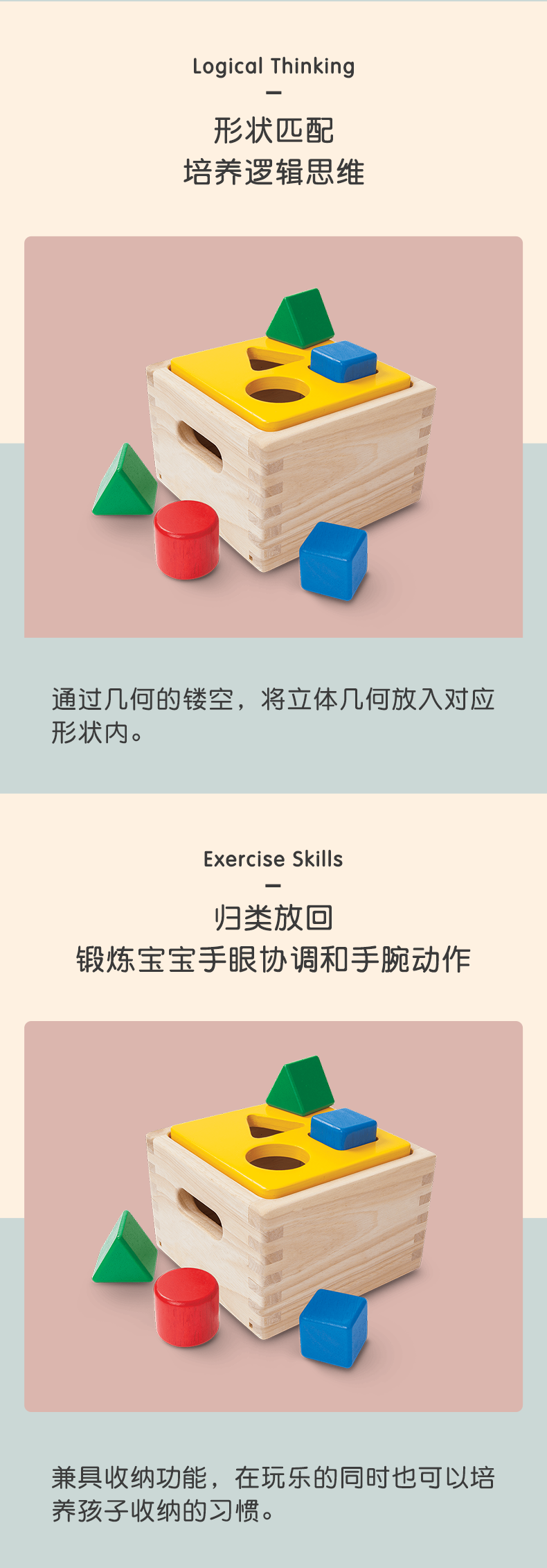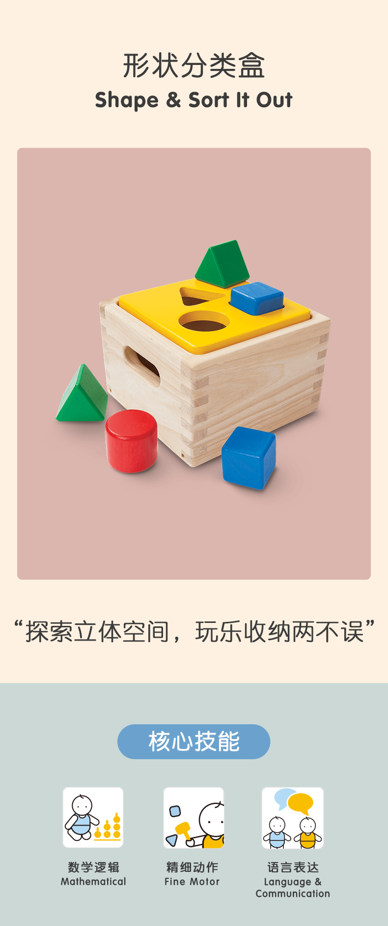 Plantoys形状配对积木进口木制儿童玩具形状配对9430