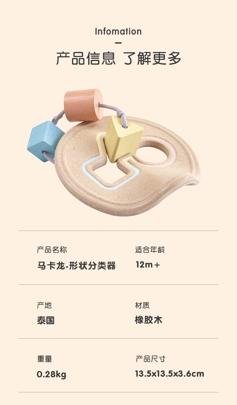 Plantoys马卡龙-形状分练器5259