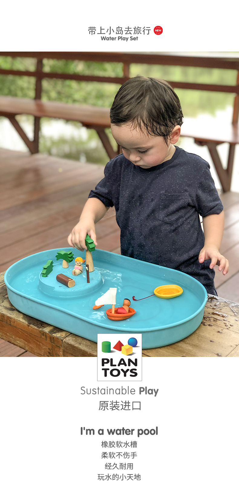 PlanToys 儿童水池戏水玩水软橡胶玩具游戏桌玩沙子工具5801