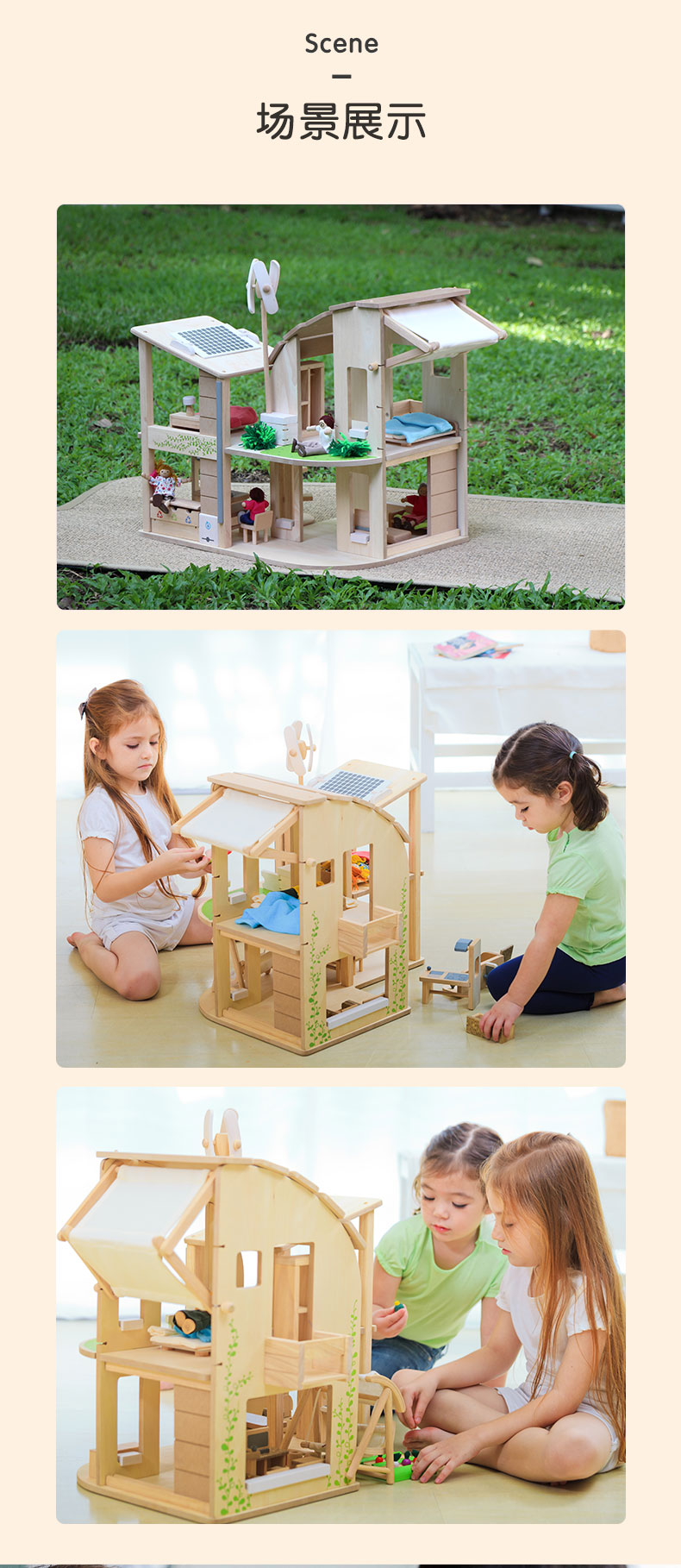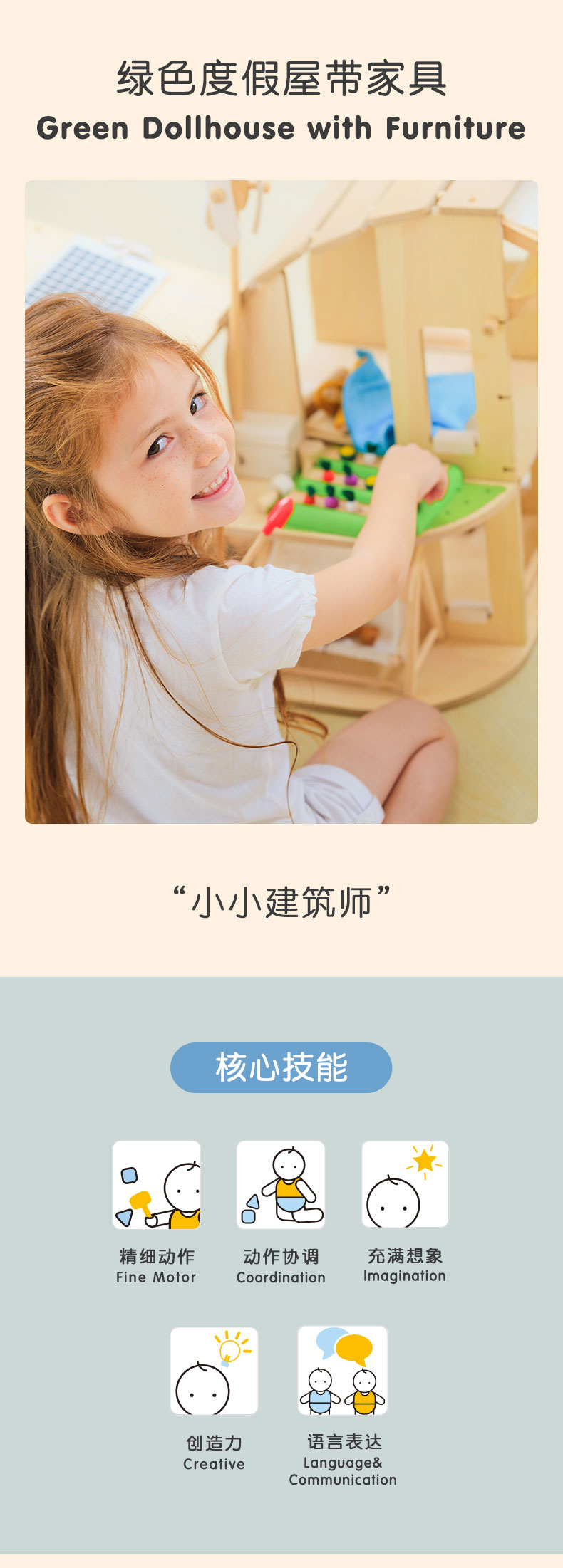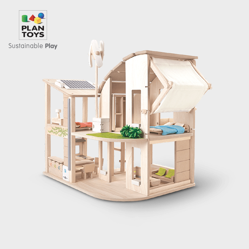 PlanToys 木制绿色度假屋过家家儿童房娃娃房玩具套装7156